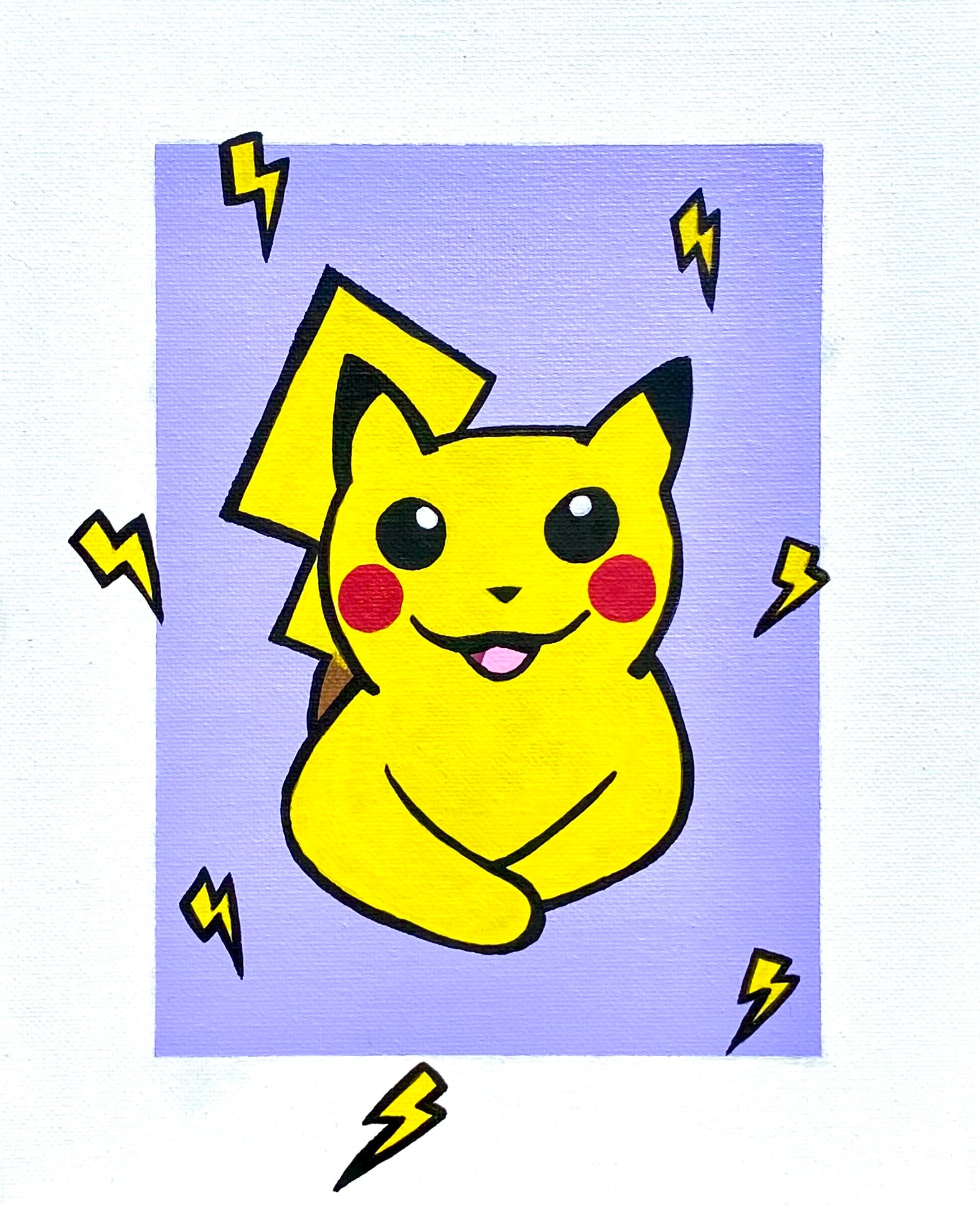 Original acrylic painting of a reimagined version of favorited Pikachu as a domestic cat.